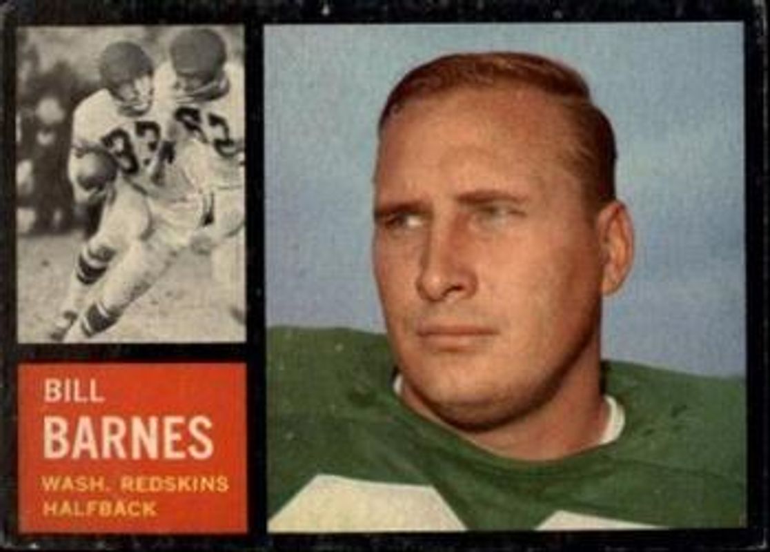 Bill Barnes' Football cards are available in at least 3 sets. Bill Barnes' biggest 7-day price movers are 1962 Topps #168 Base, 1960 Topps #84 Base, and 1958 Topps #4 Base.