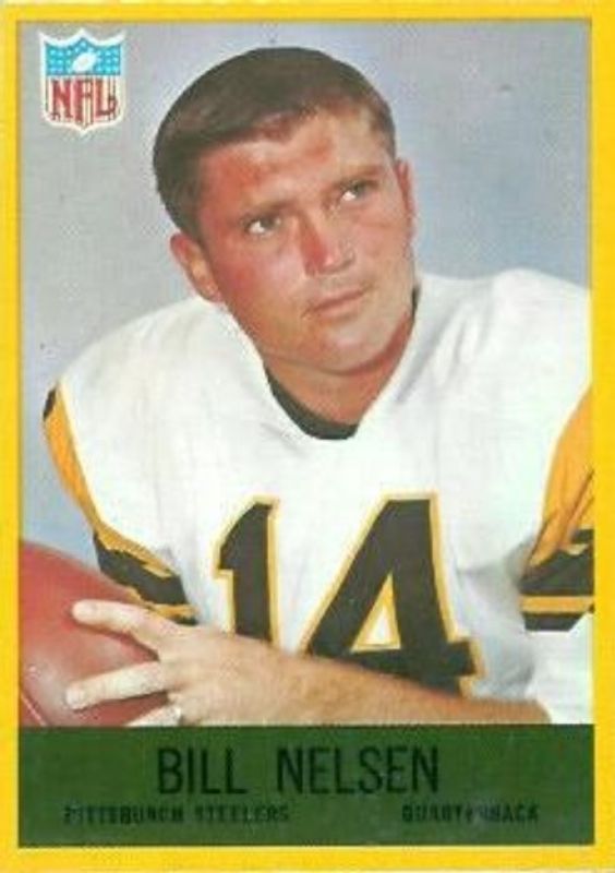 Bill Nelsen's Football cards are available in at least 6 sets. Bill Nelsen's biggest 7-day price movers are 1967 Philadelphia #155 Base, 1968 Topps #189 Base, and 1969 Topps #52 Base.