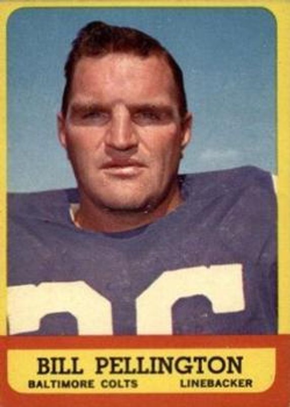 Bill Pellington's Football cards are available in at least 4 sets. Bill Pellington's biggest 7-day price movers are 1963 Topps #10 Base, 1962 Topps #9 Base, and 1960 Topps #8 Base.