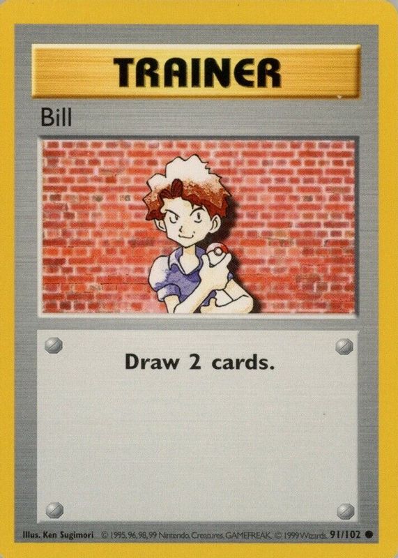 Bill's Pokemon cards are available in at least 6 sets. Bill's biggest 7-day price movers are 1999 Pokemon Game #91 Shadowless, 1999 Pokemon Game #91 1st Edition, and 2002 Legendary Collection #108 Reverse Holo.