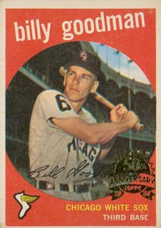 Billy Goodman's Baseball cards are available in at least 18 sets. Billy Goodman's biggest 7-day price movers are 2008 Topps Heritage #103 50th Anniversary Buybacks, 2009 Topps Heritage #69 50th Anniversary Buybacks, and 2010 Topps Heritage #247 50th Anniversary Buybacks.