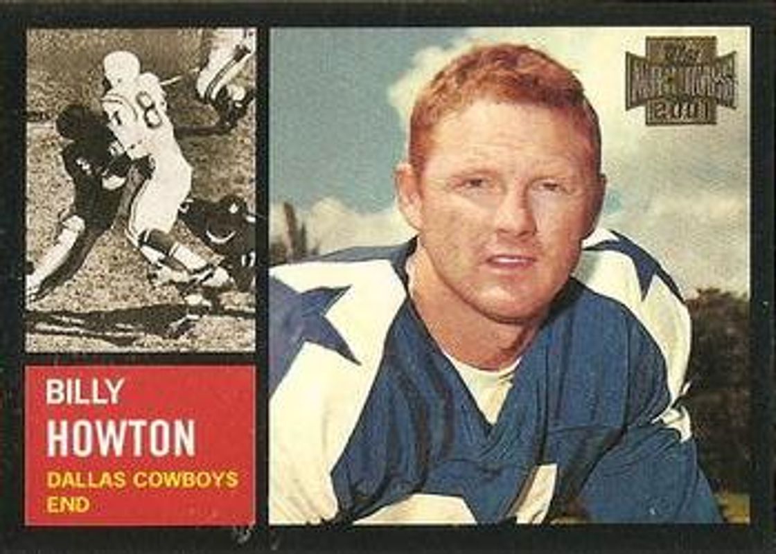 Billy Howton's Football cards are available in at least 16 sets. Billy Howton's biggest 7-day price movers are 2001 Topps Archives #111 Base, 1994 Topps Archives 1957 #33 Base, and 1994 Topps Archives 1956 #19 Base.