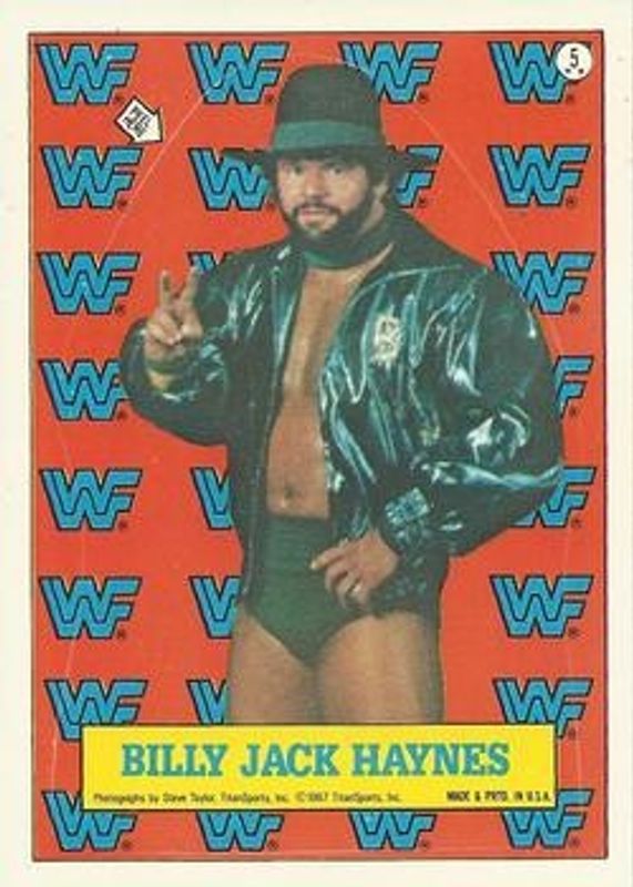 Billy Jack Haynes' Wrestling cards are available in at least 2 sets. Billy Jack Haynes' biggest 7-day price movers are 1987 Topps WWF #5 Stickers, 1987 Topps WWF #8 Base, and 1987 O-Pee-Chee WWF #8 Base.
