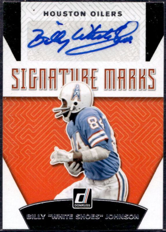 Billy Johnson's Football cards are available in at least 19 sets. Billy Johnson's biggest 7-day price movers are 2019 Donruss #SM-23 Signatures Marks, 2019 Donruss #SM-23 Signatures Marks - Green /25, and 2019 Donruss #SM-23 Signatures Marks - Blue /50.
