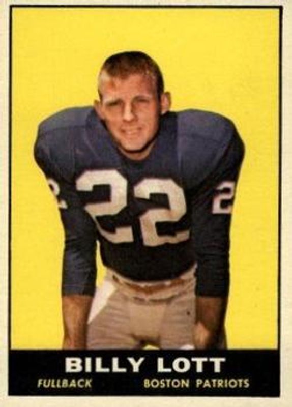 Billy Lott's Football cards are available in at least 3 sets. Billy Lott's biggest 7-day price movers are 1961 Topps #176 Base, 1962 Fleer #1 Base, and 1961 Fleer #178 Base.