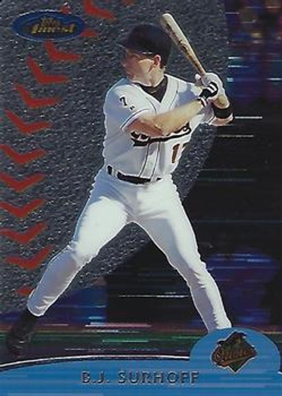 BJ Surhoff's Baseball cards are available in at least 58 sets. BJ Surhoff's biggest 7-day price movers are 2000 Topps Finest #29 Base, 2000 Topps Finest #29 Refractor /1000, and 2000 Topps Finest #29 Gold Refractor /100.