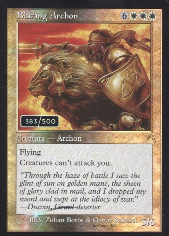 Blazing Archon's Magic: The Gathering cards are available in at least 1 sets. Blazing Archon's biggest 7-day price movers are 2024 Ravnica Remastered #302 Retro Frame /500, and 2024 Ravnica Remastered #0302 Retro Frame /500.