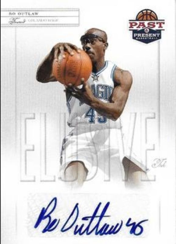 Bo Outlaw's Basketball cards are available in at least 40 sets. Bo Outlaw's biggest 7-day price movers are 2011 Past & Present #BO Elusive Ink Autographs, 1997 Metal Universe #87 Precious Metal Gems Green /10, and 1997 Metal Universe #87 Precious Metal Gems Red /90.