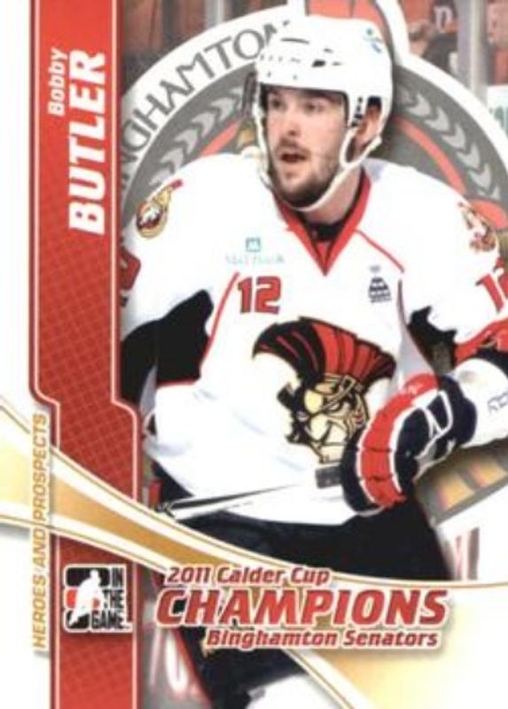 Bobby Butler's Hockey cards are available in at least 19 sets. Bobby Butler's biggest 7-day price movers are 2011 In The Game Heroes & Prospects #CC-08 Calder Cup Champions, 2012 O-Pee-Chee Retro Blank Back, and 2012 O-Pee-Chee #226 Black Rainbow /100.