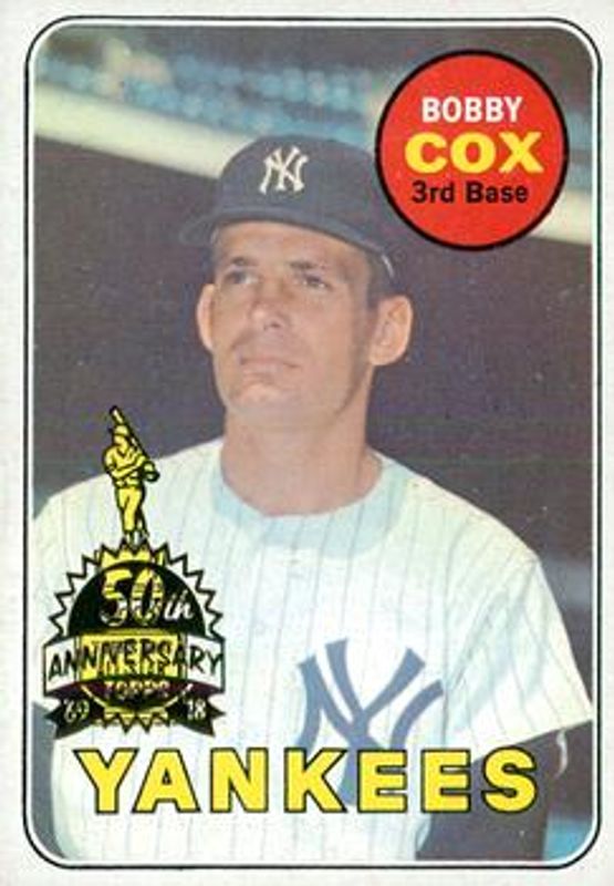 Bobby Cox's Baseball cards are available in at least 14 sets. Bobby Cox's biggest 7-day price movers are 2018 Topps Heritage #237 50th Anniversary Buybacks, 2004 Topps Heritage #98 Base, and 2003 Topps Heritage #176 Base.