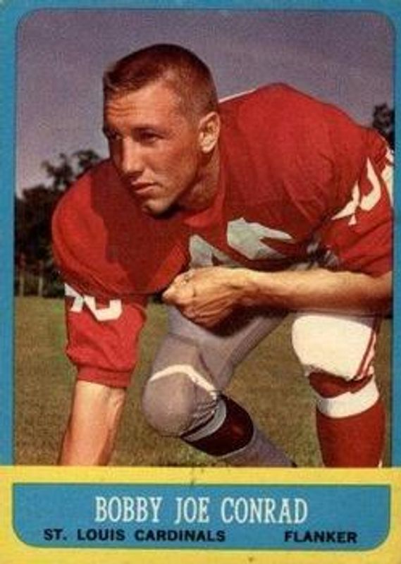 Bobby Joe Conrad's Football cards are available in at least 6 sets. Bobby Joe Conrad's biggest 7-day price movers are 1963 Topps #148 Base, 1962 Topps #141 Base, and 1960 Topps #106 Base.