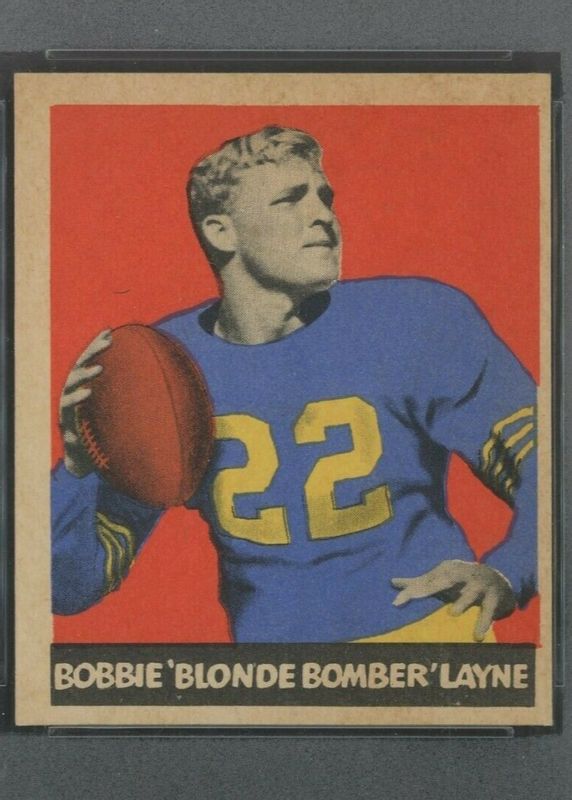 Bobby Layne's Football cards are available in at least 33 sets. Bobby Layne's biggest 7-day price movers are 1949 Leaf #67 Base, 1951 Bowman #102 Base, and 1952 Bowman Small #78 Base.