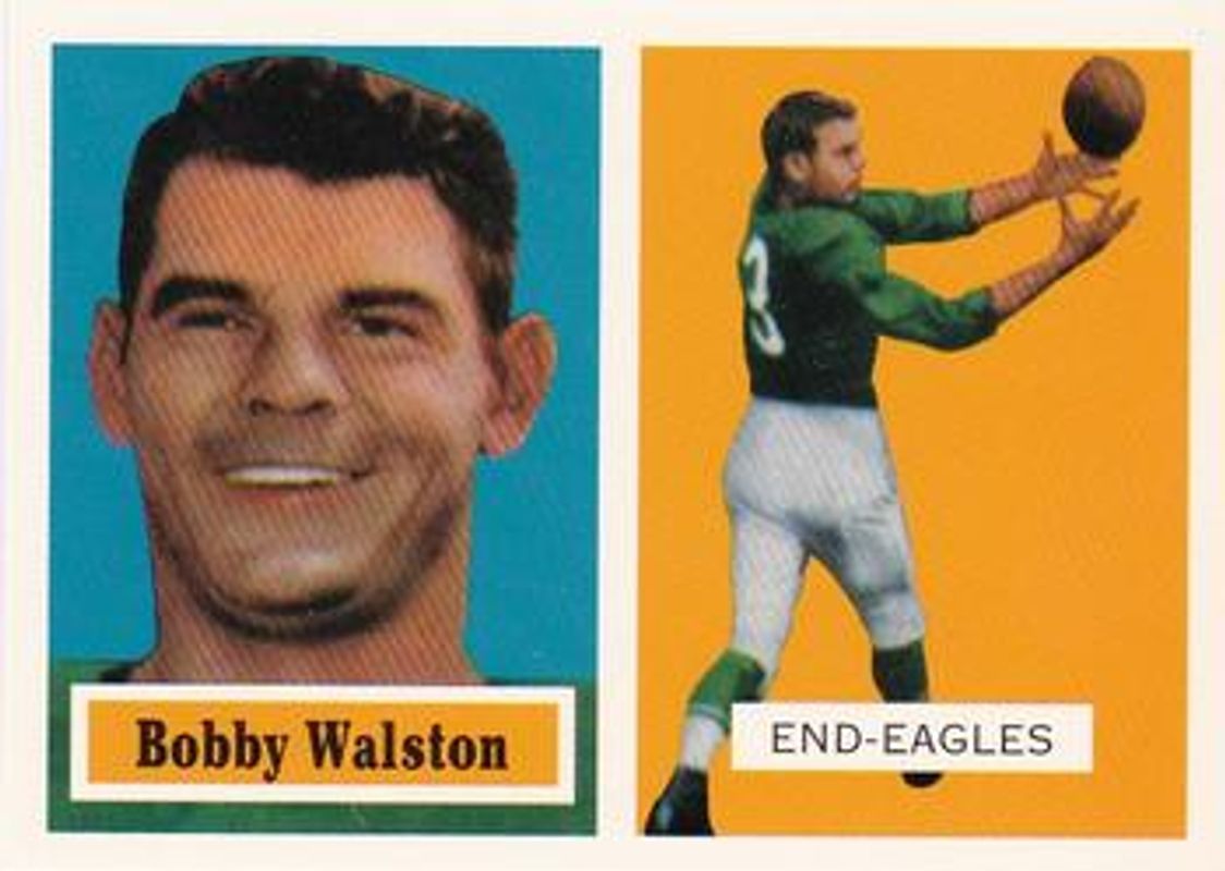 Bobby Walston's Football cards are available in at least 6 sets. Bobby Walston's biggest 7-day price movers are 1994 Topps Archives 1957 #61 Base, 1994 Topps Archives 1957 #61 Gold, and 1962 Topps #9 Bucks.