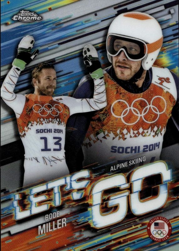 Bode Miller's Olympics cards are available in at least 1 sets. Bode Miller's biggest 7-day price movers are 2026 Topps Chrome US Olympic & Paralympic Team Hopefuls #LG-21 Let's Go /(SSP), 2026 Topps Chrome US Olympic & Paralympic Team Hopefuls #LG-21 Let's Go - Superfractor /1, and 2026 Topps Chrome US Olympic & Paralympic Team Hopefuls #HX-20 Helix /(SSP).
