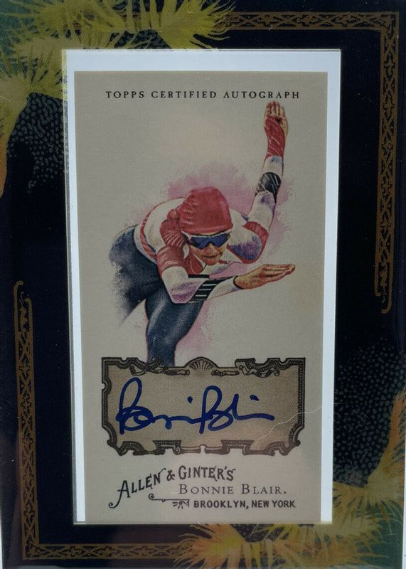 Bonnie Blair's Olympics cards are available in at least 1 sets. Bonnie Blair's biggest 7-day price movers are 2008 Topps Allen & Ginter #AGA-BB Framed Mini Auto.