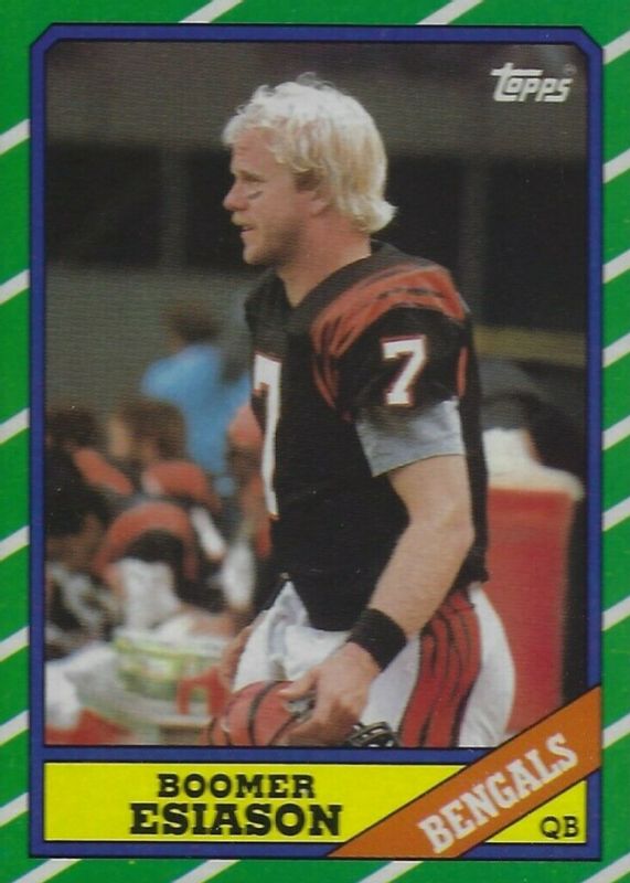 Boomer Esiason's Football cards are available in at least 54 sets. Boomer Esiason's biggest 7-day price movers are 1986 Topps #255 Base, 1997 Upper Deck Black Diamond #10 Base, and 1997 Upper Deck Black Diamond #10 Gold.