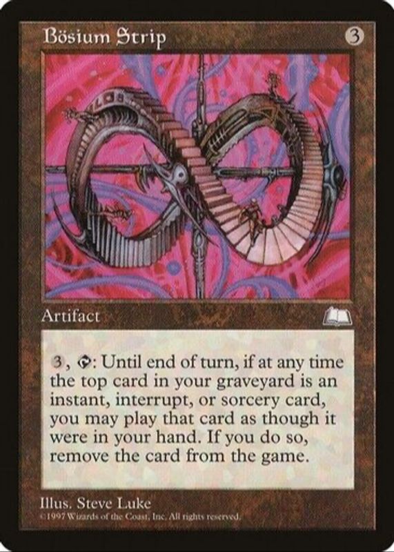 Bosium Strip's Magic: The Gathering cards are available in at least 1 sets. Bosium Strip's biggest 7-day price movers are 1997 Weatherlight Base.