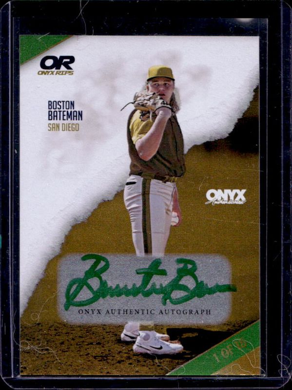 Boston Bateman's Baseball cards are available in at least 8 sets. Boston Bateman's biggest 7-day price movers are 2024 Onyx Vintage Extended Series #OVBOBA Base, 2024 Onyx Vintage Extended Series #VABOBA Autographs - Red Border /25, and 2024 Onyx Vintage Extended Series #OVBOBA Red /25.