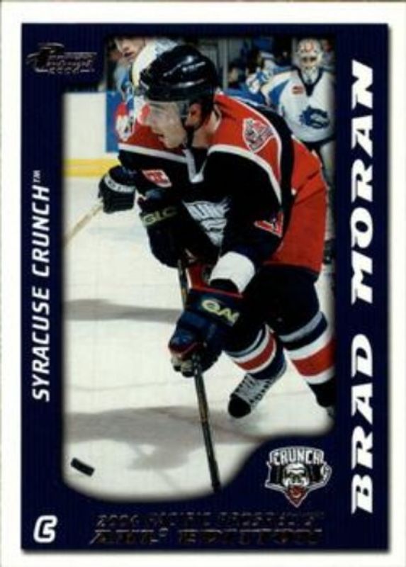 Brad Moran's Hockey cards are available in at least 6 sets. Brad Moran's biggest 7-day price movers are 2003 Pacific Prospects AHL #87 Base, 2003 Pacific Prospects AHL #87 Gold /925, and 1999 Upper Deck MVP Stanley Cup Edition #203 Silver Script.