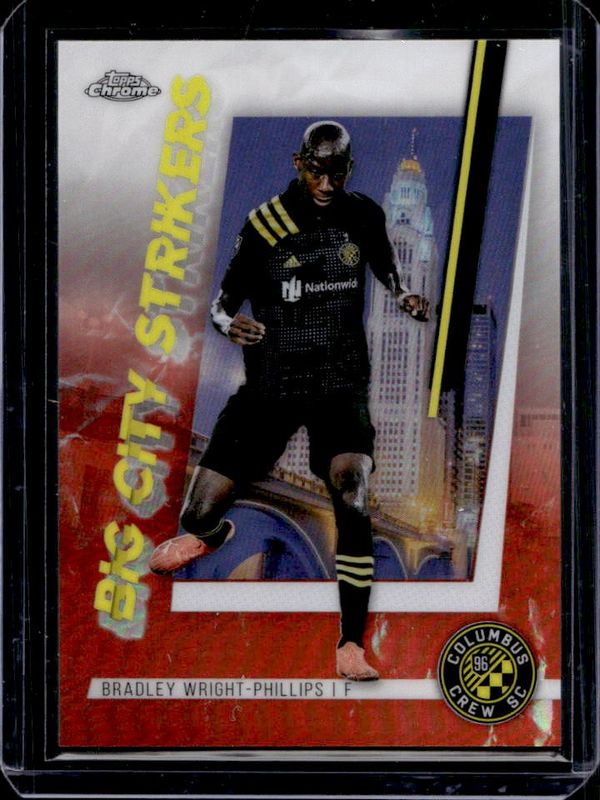 Bradley Wright-Phillips' Soccer cards are available in at least 17 sets. Bradley Wright-Phillips' biggest 7-day price movers are 2021 Topps Chrome MLS #BCS-15 Big City Strikers - Orange Refractor /25, 2021 Topps Chrome MLS #BCS-15 Big City Strikers, and 2021 Topps Chrome MLS #BCS-15 Big City Strikers - Superfractor /1.