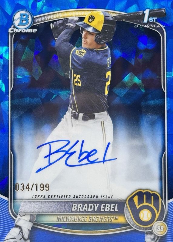 Brady Ebel's Baseball cards are available in at least 7 sets. Brady Ebel's biggest 7-day price movers are 2025 Bowman Draft #BDC-194 Chrome - Blue Refractor /150 (1st), 2025 Bowman Draft #BDC-194 Chrome - X-Fractor (1st), and 2025 Bowman Draft #BDC-194 Chrome - Green Grass Refractor /99 (1st).