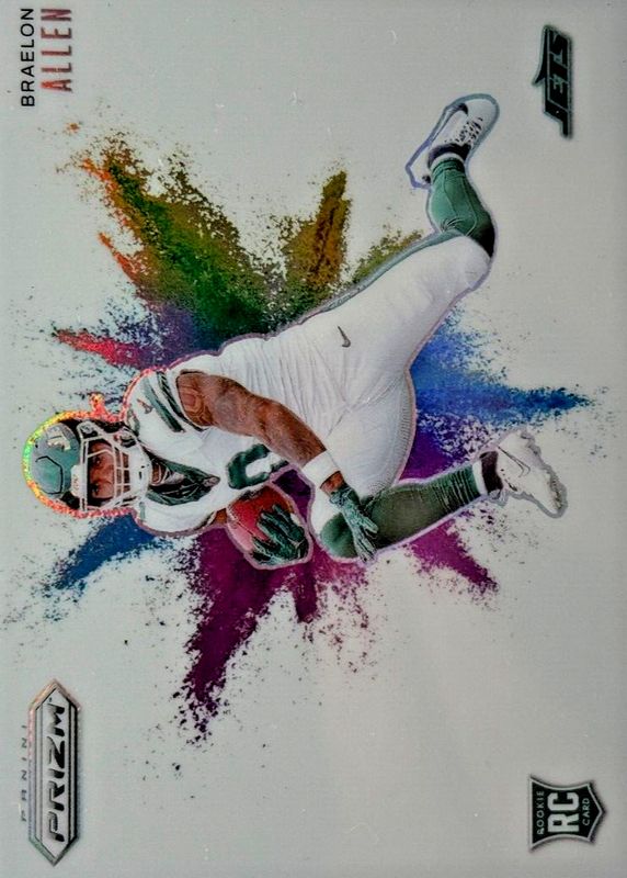 Braelon Allen's Football cards are available in at least 33 sets. Braelon Allen's biggest 7-day price movers are 2024 Prizm #17 Color Blast /(SSP), 2024 Mosaic #389 Rookie Autographs - Black /1, and 2024 Mosaic #389 Silver.