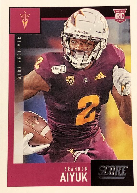 Brandon Aiyuk's Football cards are available in at least 46 sets. Brandon Aiyuk's biggest 7-day price movers are 2020 Score #414 Base, 2020 National Treasures #CRS-BA Crossover Rookie Patch Autographs /99, and 2025 Revolution #119 Cosmic /20.