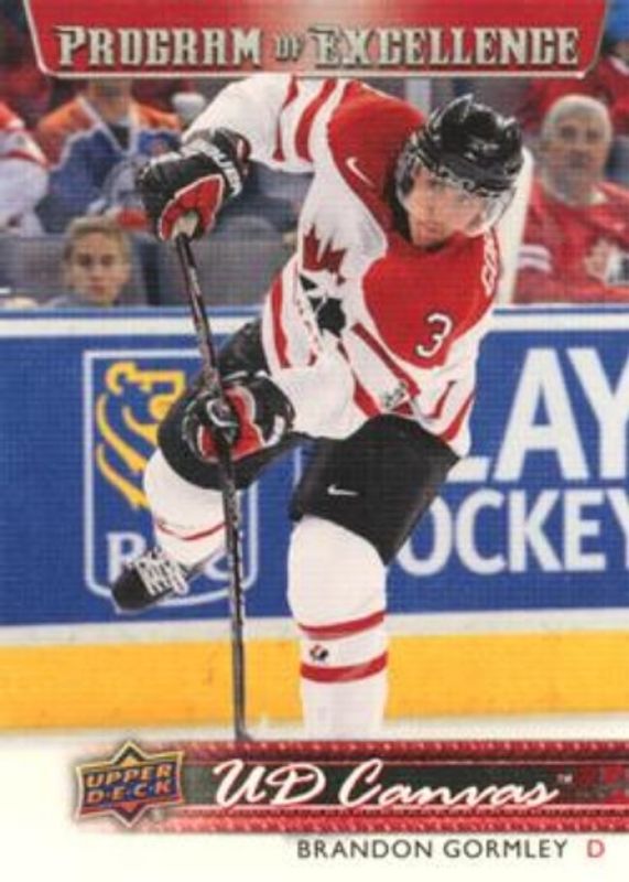 Brandon Gormley's Hockey cards are available in at least 21 sets. Brandon Gormley's biggest 7-day price movers are 2014 Upper Deck #C258 UD Canvas, 2014 Upper Deck #202 Young Guns - UD Exclusives /100, and 2014 Upper Deck #202 Young Guns - UD High Gloss /10.