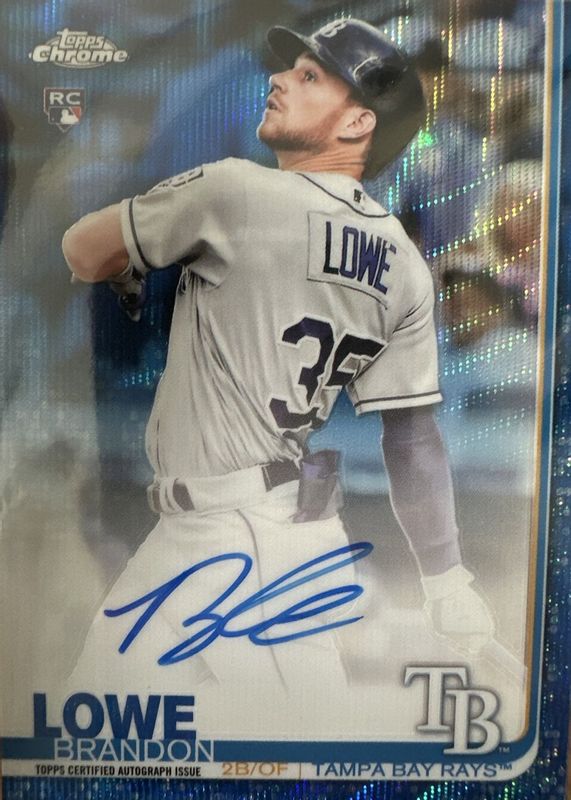 Brandon Lowe's Baseball cards are available in at least 65 sets. Brandon Lowe's biggest 7-day price movers are 2019 Topps Chrome #RA-BL Rookie Auto - Blue Wave Refractor /150, 2024 Topps Chrome Update #HFAC-9 Home Field Advantage /(SSP), and 2019 Topps Chrome #RA-BL Rookie Auto - Green Refractor /99.