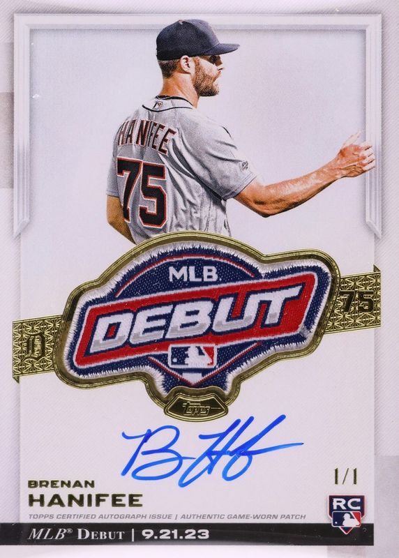 Brenan Hanifee's Baseball cards are available in at least 2 sets. Brenan Hanifee's biggest 7-day price movers are 2024 Topps Chrome Update #RDPA-BH Rookie Debut Patch Autographs /1, and 2024 Topps #369 Golden Mirror Image Variation /(SSP).