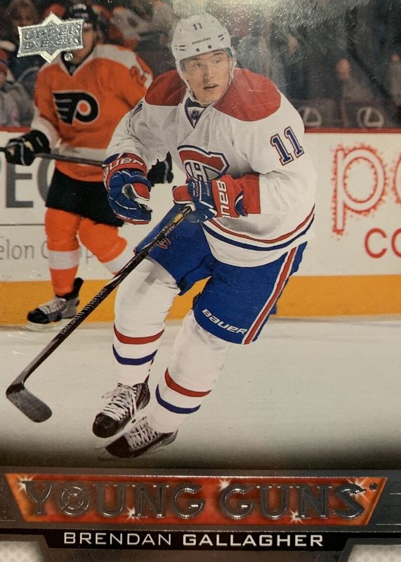 Brendan Gallagher's Hockey cards are available in at least 138 sets. Brendan Gallagher's biggest 7-day price movers are 2013 Upper Deck #477 Young Guns Base, 2013 Upper Deck The Cup #TRI-127 Auto Rookie Masterpiece Press Plates Trilogy Cyan /1, and 2013 Upper Deck The Cup #181 Printing Plates SP Game Used Magenta /1.