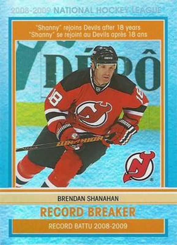 Brendan Shanahan's Hockey cards are available in at least 98 sets. Brendan Shanahan's biggest 7-day price movers are 2009 O-Pee-Chee #RB9 Record Breakers, 2009 O-Pee-Chee #49 Rainbow, and 2009 O-Pee-Chee #49 Retro Blank Back.