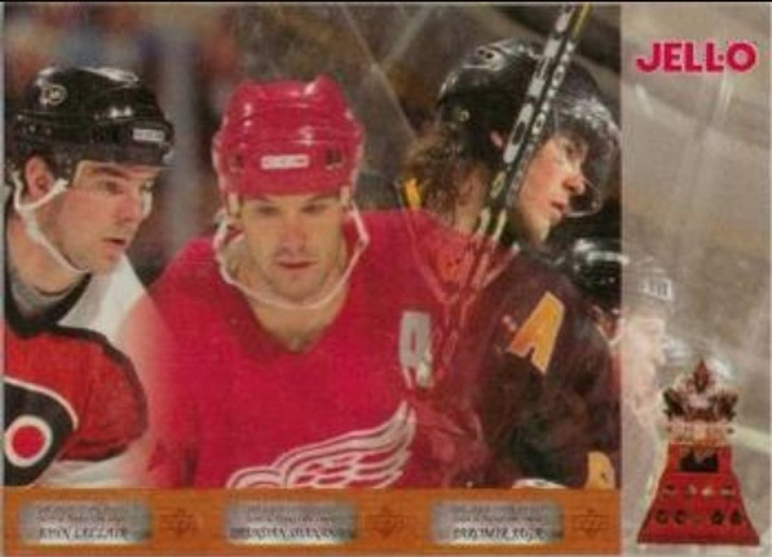 Brendan Shanahan / Jaromir Jagr / John LeClair's Hockey cards are available in at least 1 sets. Brendan Shanahan / Jaromir Jagr / John LeClair's biggest 7-day price movers are 1996 Upper Deck Kraft Jell O Award Winners.