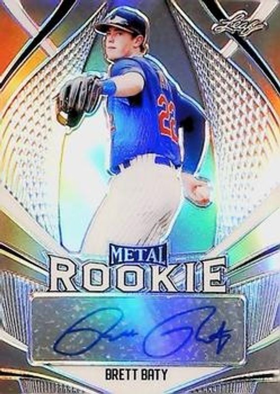 Brett Baty's Multi-Sport cards are available in at least 1 sets. Brett Baty's biggest 7-day price movers are 2020 Leaf Metal Rookie Autograph #MR-BB2 Base /50, 2020 Leaf Metal Rookie Autograph #MR-BB2 Crystal Green /4, and 2020 Leaf Metal Rookie Autograph #MR-BB2 Crystal Purple /10.