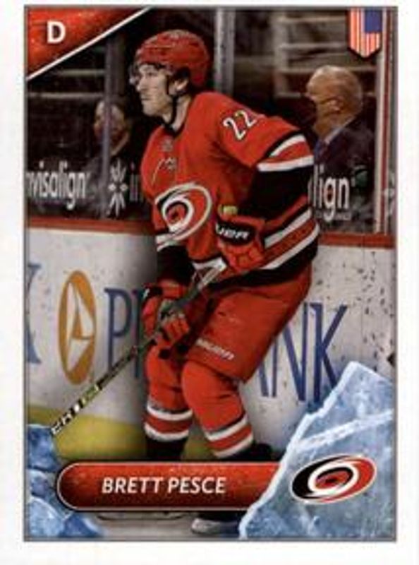 The biggest 30-day change Brett Pesce cards are 2021 Topps Stickers #146 Base, 2018 Panini Stickers #48 Base, and 2015 Upper Deck Ultimate Collection #51 Ultimate Rookies Platinum Blue Tag /5.