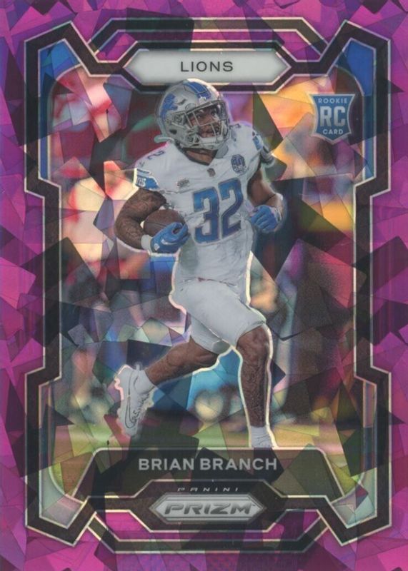 Brian Branch's Football cards are available in at least 11 sets. Brian Branch's biggest 7-day price movers are 2023 Prizm #328 Purple Ice /225, 2023 Prizm #328 Black & White Checker /(SSP), and 2023 Prizm #328 Blue Ice /99.