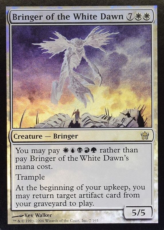 Bringer of the White Dawn's Magic: The Gathering cards are available in at least 1 sets. Bringer of the White Dawn's biggest 7-day price movers are 2004 Fifth Dawn #7 Foil, and 2004 Fifth Dawn #7 Base.