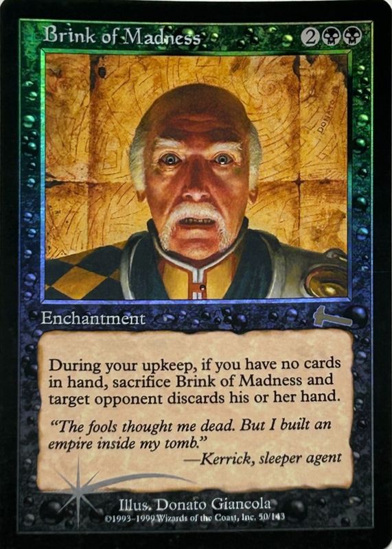 The biggest 30-day change Brink of Madness cards are 1999 Urza's Legacy #50 Foil, and 1999 Urza's Legacy #50 Base.
