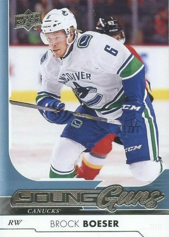 Brock Boeser's Hockey cards are available in at least 125 sets. Brock Boeser's biggest 7-day price movers are 2017 Upper Deck #247 Young Guns Base, 2017 Upper Deck Artifacts #171 Base /799, and 2021 Upper Deck Black Diamond #EM-BB Exquisite Collection Materials - Gold /10.