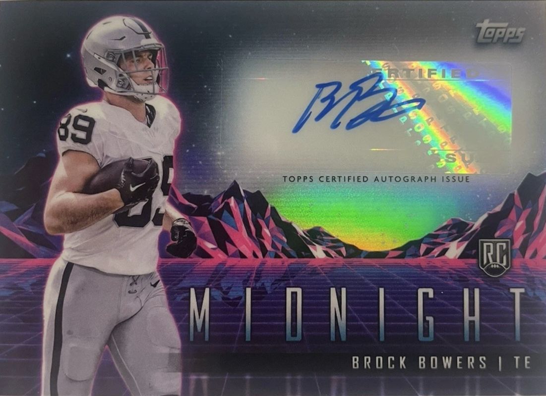 The biggest 30-day change Brock Bowers cards are 2024 Topps Resurgence #147 Refractor, 2024 Mosaic #313 Mosaic, and 2024 Topps Midnight #49 Morning /149.