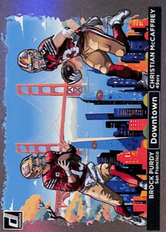 Brock Purdy / Christian McCaffrey's Football cards are available in at least 3 sets. Brock Purdy / Christian McCaffrey's biggest 7-day price movers are 2024 Donruss #7 Downtown Horizontal /(SSP), 2024 One #TT-SF Team Titans /(SSP), and 2024 Donruss #7 Downtown Horizontal - Black /1.