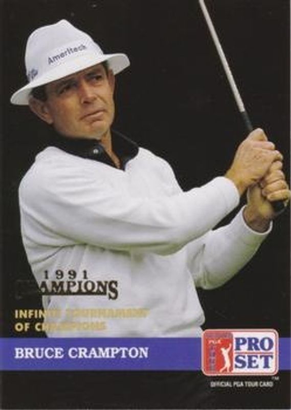 Bruce Crampton's Golf cards are available in at least 3 sets. Bruce Crampton's biggest 7-day price movers are 1992 Pro Set PGA Tour #220 1991 Champions, 1991 Pro Set PGA Tour #221 Base, and 1992 Pro Set PGA Tour #220 Base.
