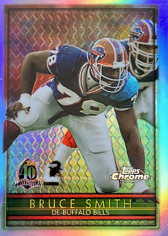 Bruce Smith's Football cards are available in at least 200 sets. Bruce Smith's biggest 7-day price movers are 1986 Topps #389 Base, 1996 Topps Chrome #120 Refractor, and 1988 Topps #227 Base.