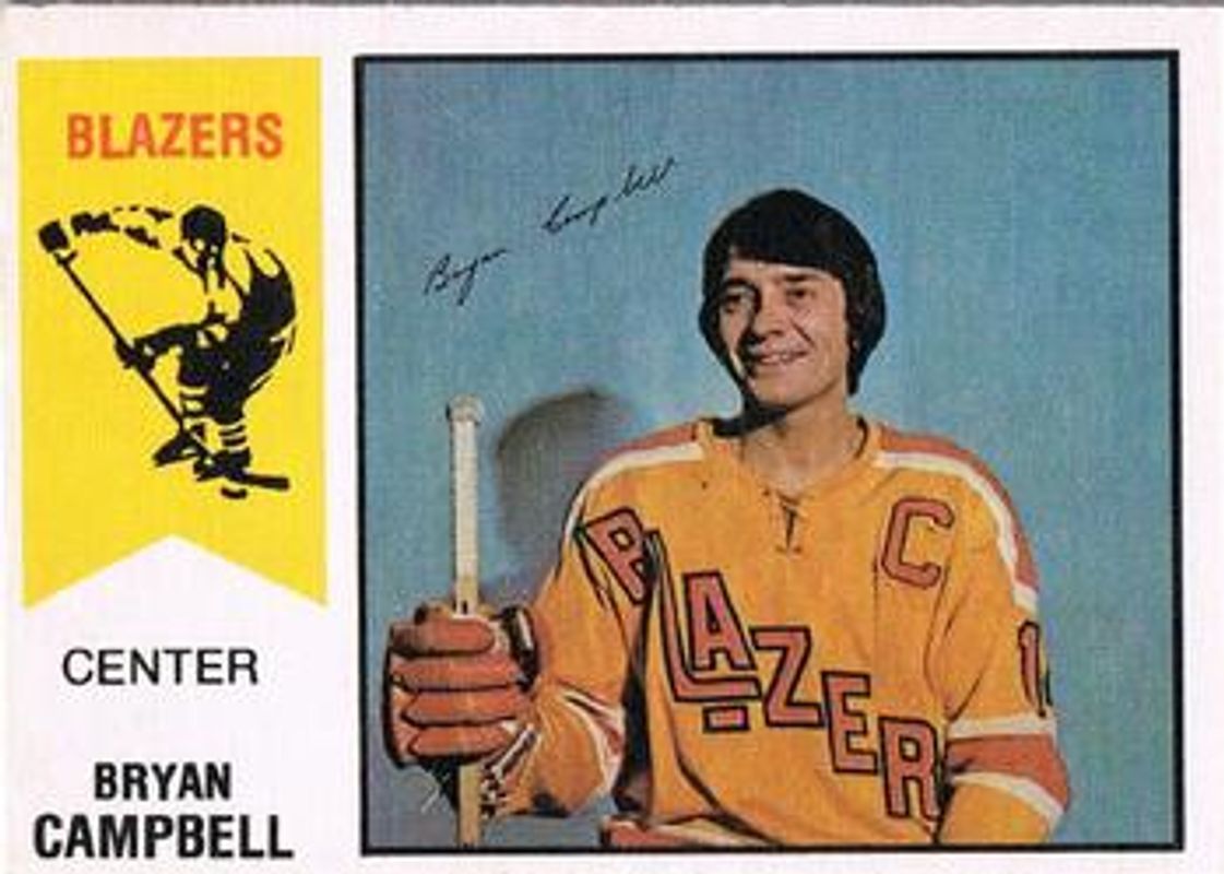 Bryan Campbell's Hockey cards are available in at least 4 sets. Bryan Campbell's biggest 7-day price movers are 1974 O-Pee-Chee WHA #6 Base, 1975 O-Pee-Chee WHA #31 Base, and 1976 O-Pee-Chee WHA #16 Base.