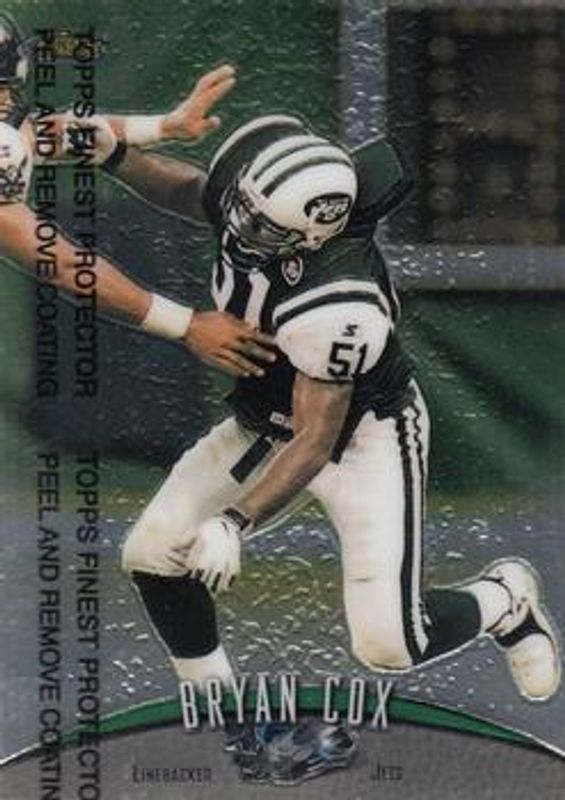Bryan Cox's Football cards are available in at least 56 sets. Bryan Cox's biggest 7-day price movers are 1998 Topps Finest #237 Base, 1998 Topps Finest #237 No Protectors, and 1998 Topps Finest #237 No Protectors Refractor.