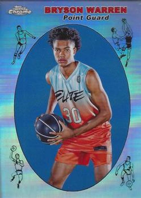 Bryson Warren's Basketball cards are available in at least 7 sets. Bryson Warren's biggest 7-day price movers are 2021 Topps Chrome OTE Overtime Elite #69TB-23 1969 Topps Basketball, 2021 Topps Chrome OTE Overtime Elite #69TB-23 1969 Topps Basketball - Orange Refractor /25, and 2021 Topps Chrome OTE Overtime Elite #69TB-23 1969 Topps Basketball - Printing Plates Cyan /1.
