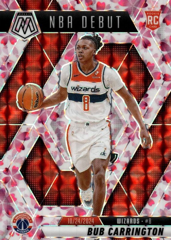 Bub Carrington's Basketball cards are available in at least 30 sets. Bub Carrington's biggest 7-day price movers are 2024 Select #81 Concourse Tri-Color, 2024 Mosaic #259 NBA Debut - Choice Cherry Blossom /20, and 2024 Select #266 Courtside Gold Cracked Ice /10.