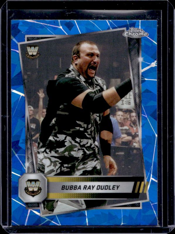 Bubba Ray Dudley's Wrestling cards are available in at least 9 sets. Bubba Ray Dudley's biggest 7-day price movers are 2025 Topps Chrome WWE Sapphire Edition #9 Base Chrome, 2025 Topps Chrome WWE Sapphire Edition #9 Base Chrome - Gold Refractor /50, and 2025 Topps Chrome WWE Sapphire Edition #9 Base Chrome - Red Refractor /5.
