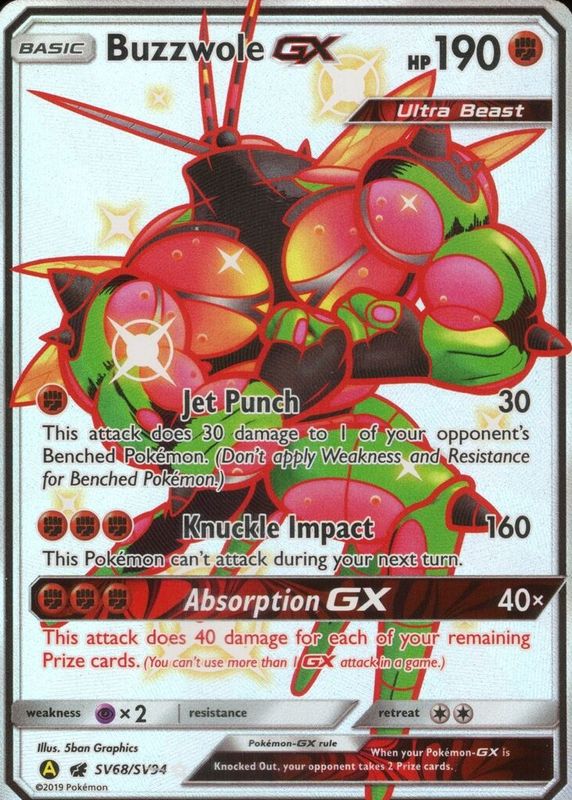 Buzzwole GX's Pokemon cards are available in at least 4 sets. Buzzwole GX's biggest 7-day price movers are 2017 Sun & Moon: Crimson Invasion #057/111 Holo, 2017 Japanese Sun & Moon: Awakened Heroes #052/050 Super Rare (Full Art), and 2017 Japanese Sun & Moon: Awakened Heroes #057/050 Hyper Rare (Secret).