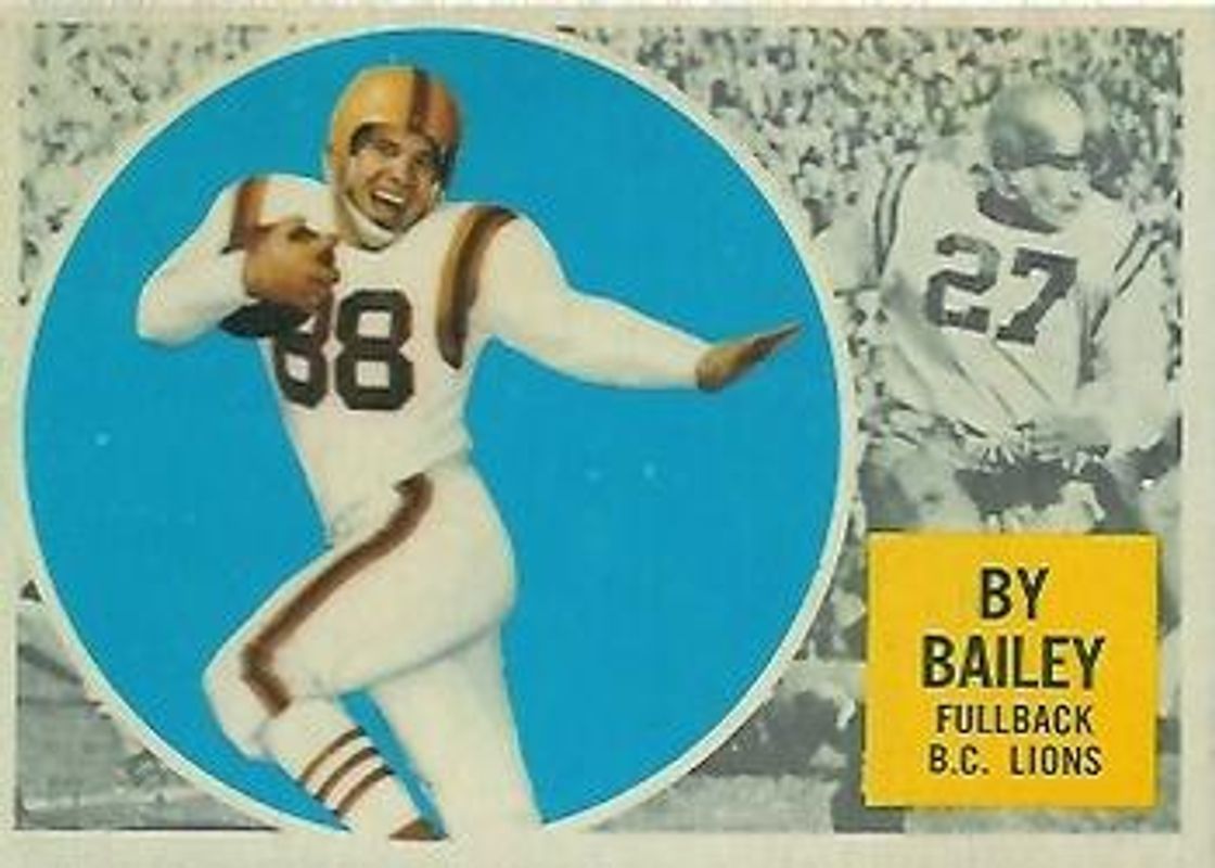 By Bailey's Football cards are available in at least 4 sets. By Bailey's biggest 7-day price movers are 1960 Topps CFL #1 Base, 1961 Topps CFL #1 Base, and 1962 Topps CFL #1 Base.